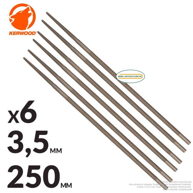 6 limes d'affûtage 3,5 mm (9/64) chaîne 1/4LP, Kerwood