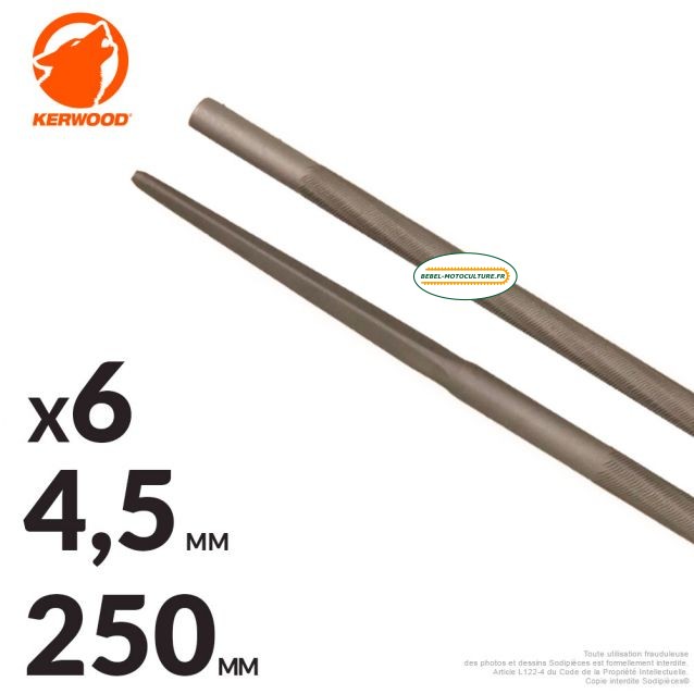 6 limes d'affûtage 4,5 mm (11/64) chaîne .325 à mi-usure, Kerwood