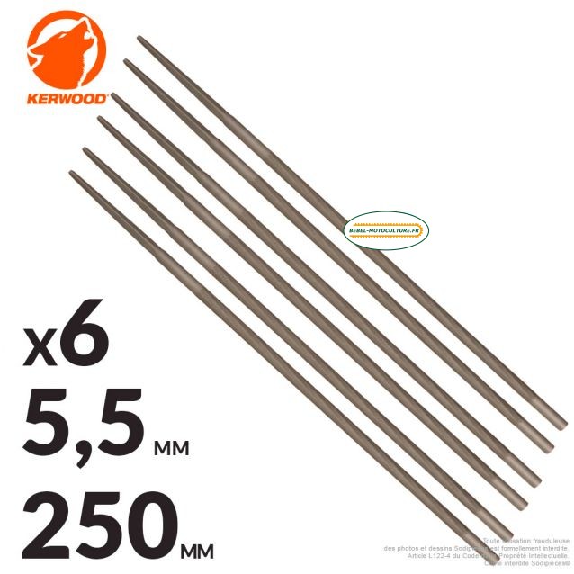 6 limes d’affûtage 5,5 mm (7/32) chaîne 3/8″ et .404″, Kerwood